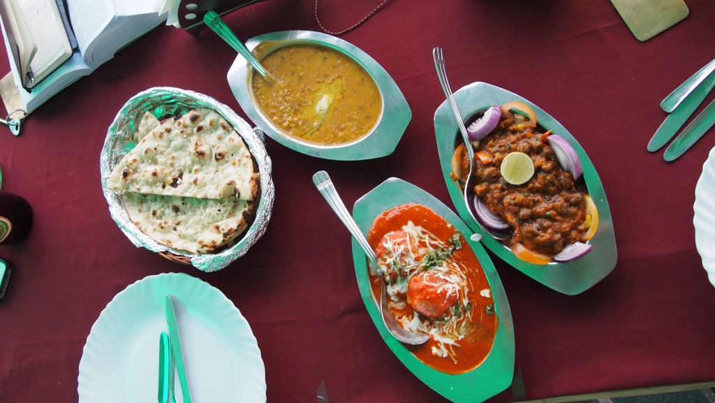 Chapatis, pappadoms, roegelse, te-vogne, madboder, spedalske, politi, mange gamle , hellige orange maend med filtret haar, blomster-skaale, koer og buffales