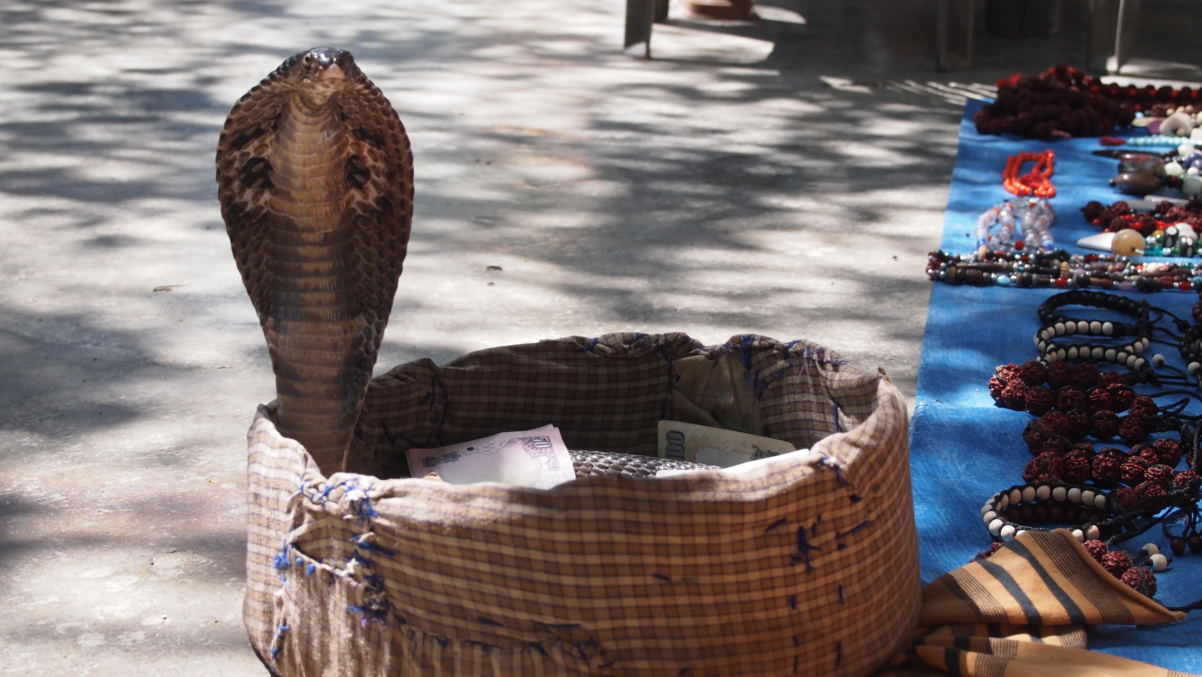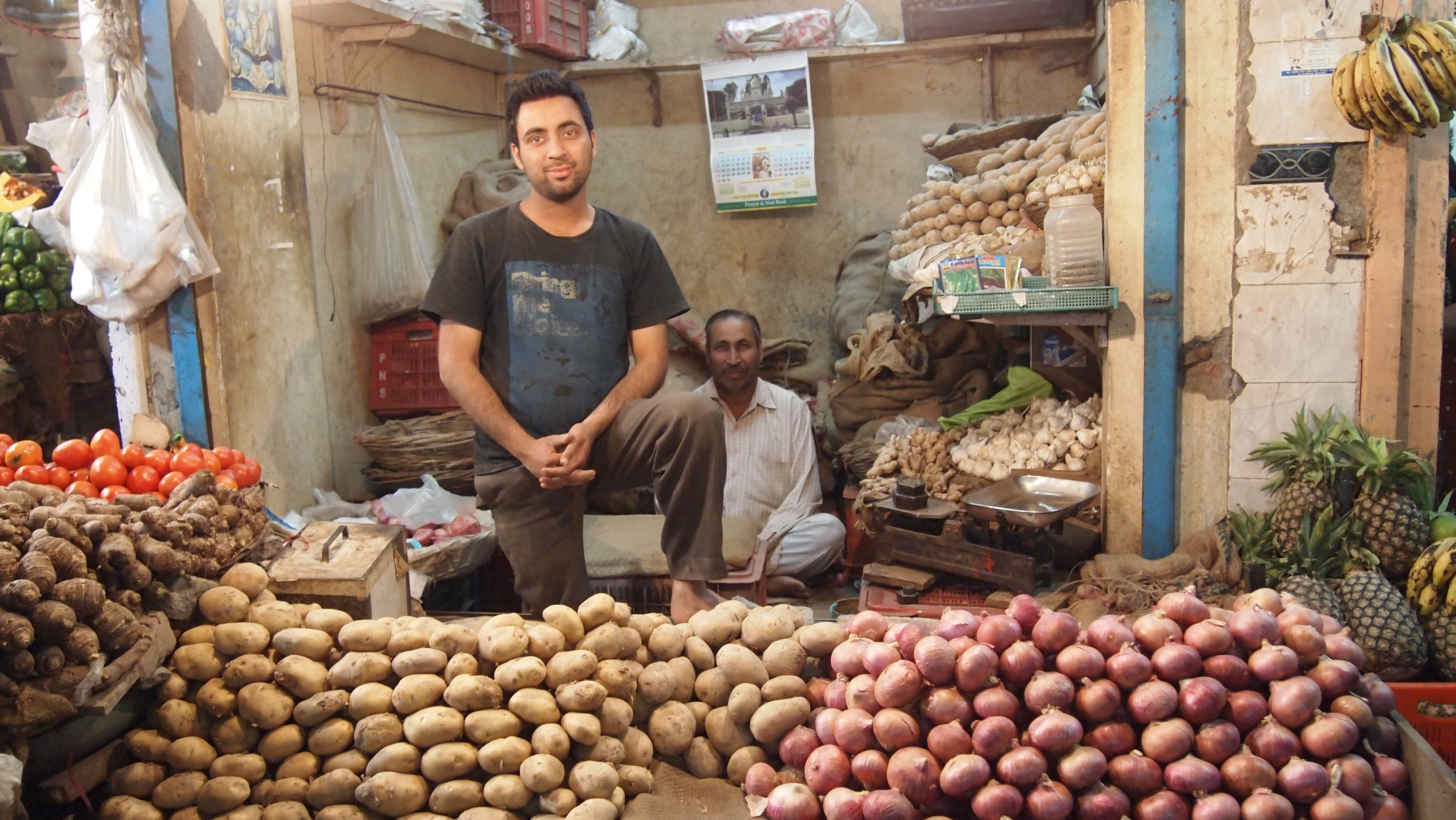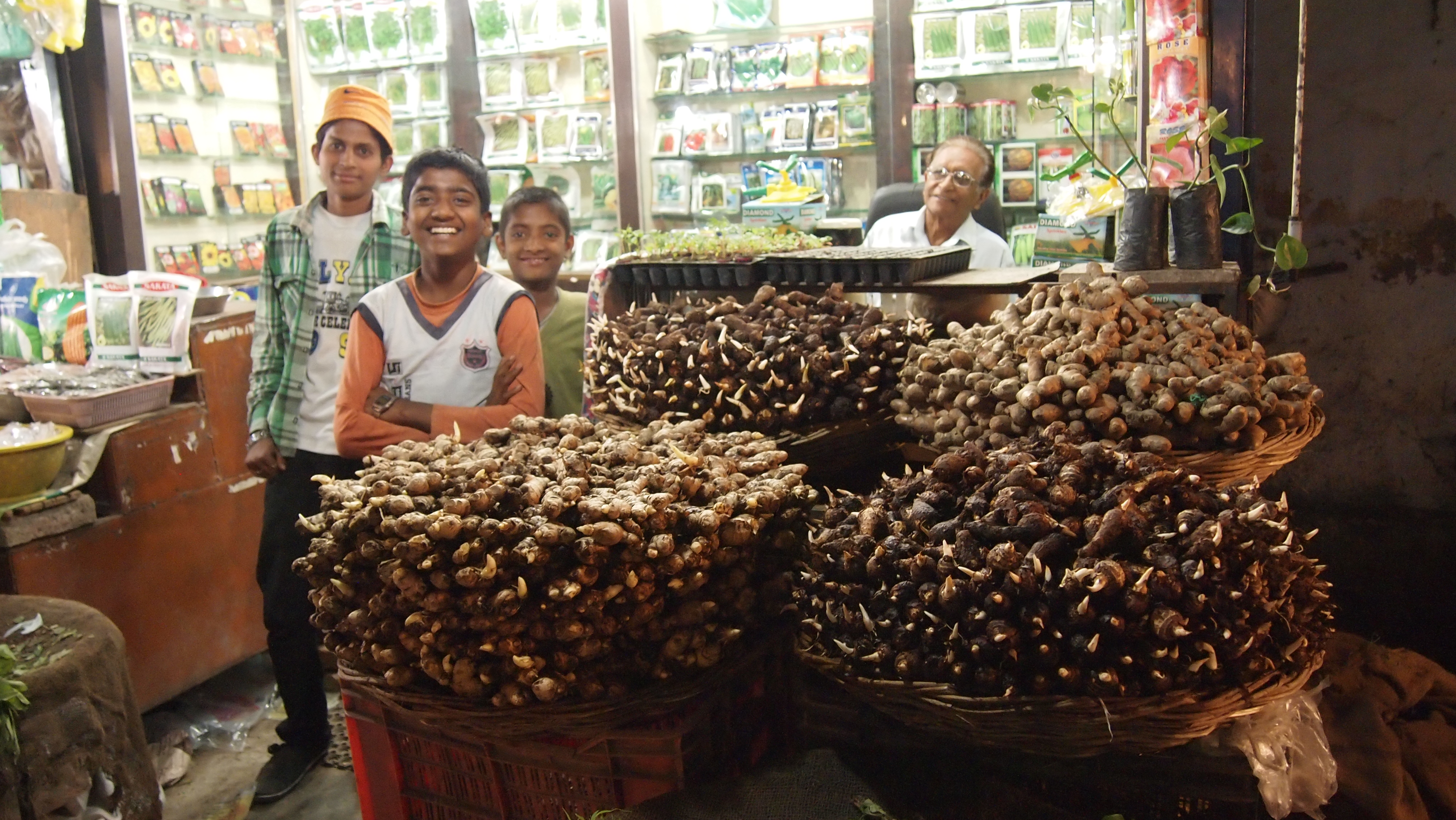 Nej det er jeg vist ikke – altså Hindu – men spoerg mig om jeg er vegetar – saa kunne jeg svarre at saa laenge jeg rejser i Hindustan, saa er jeg. Slagterbutikkerne er noget usle, og bevaeger man sig rundt i koedbasaren bliver der mellem de udhaengte kyllinger og faar/lam let aabnet for en doer til en slagtet gris ogsaa – “se her” siger de til mig, for de tror jeg ikke kan leve uden grisekoed. OG DET ER IKKE PAA KOEL, men fint skaaret i steg og ligger paa disken i det dunkle lokale.